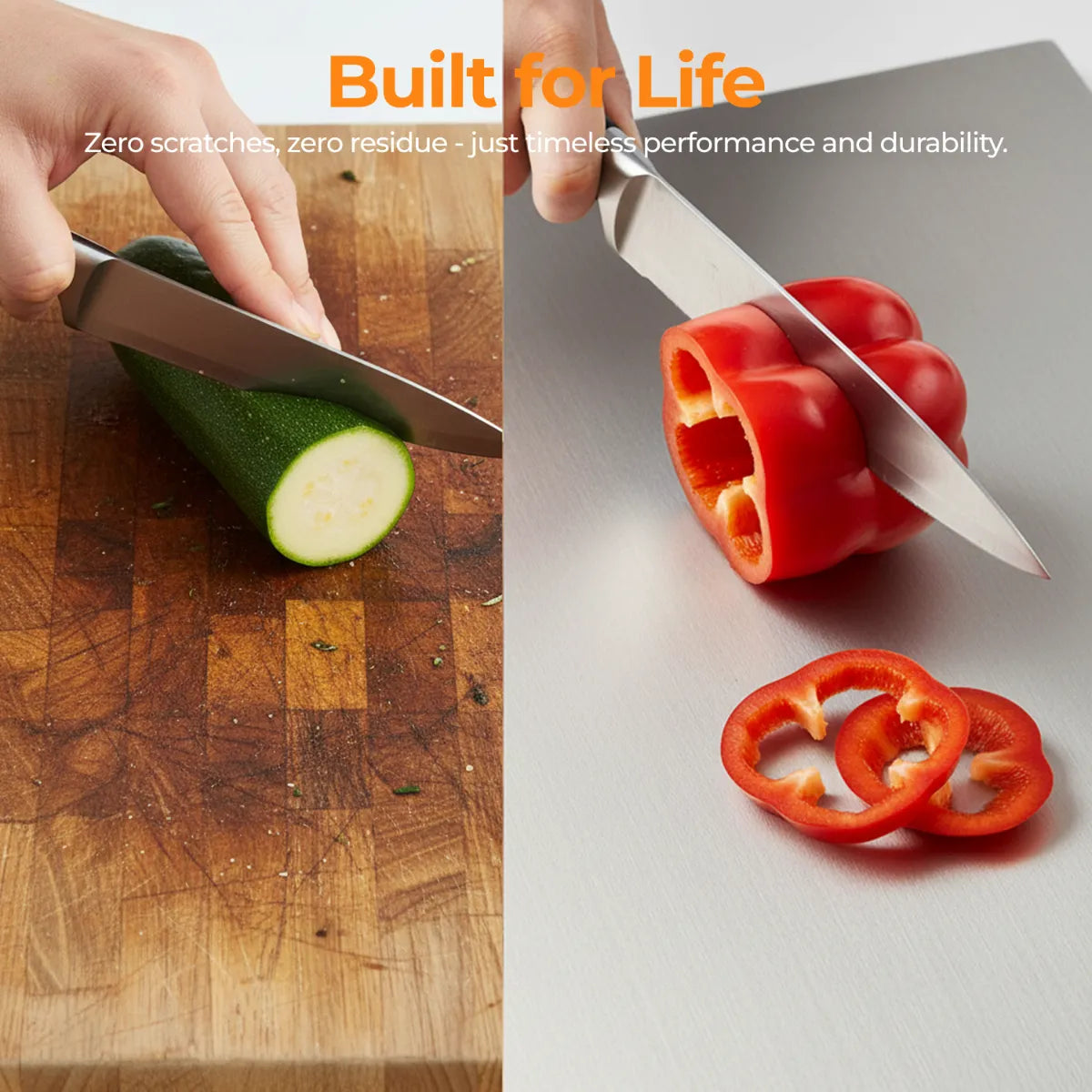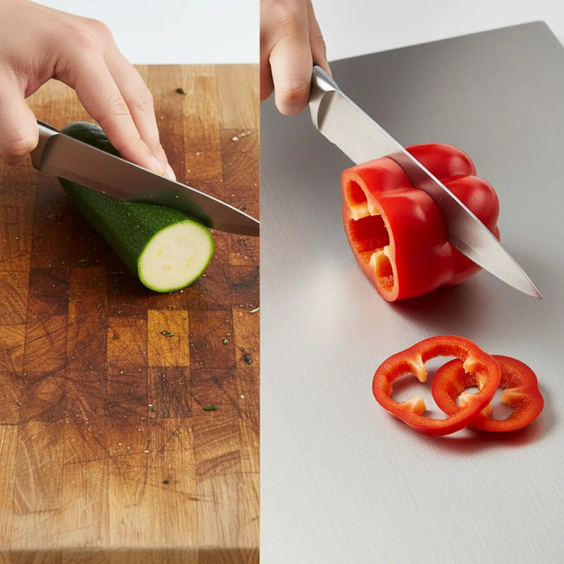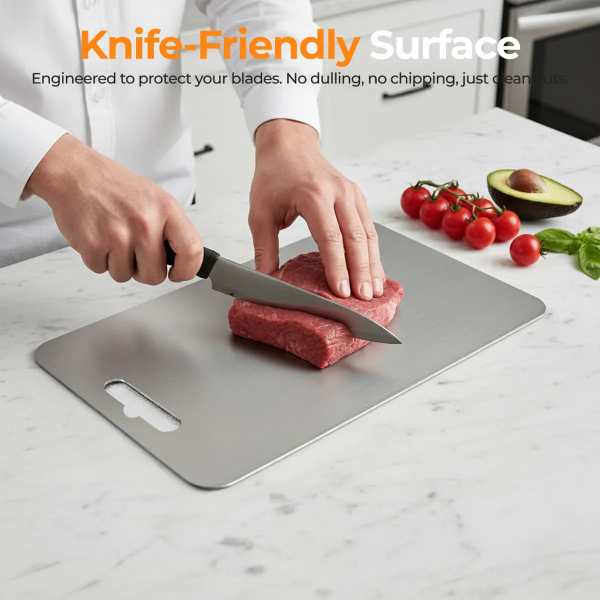 Avoid cutting frozen food or bones to maintain surface integrity.
